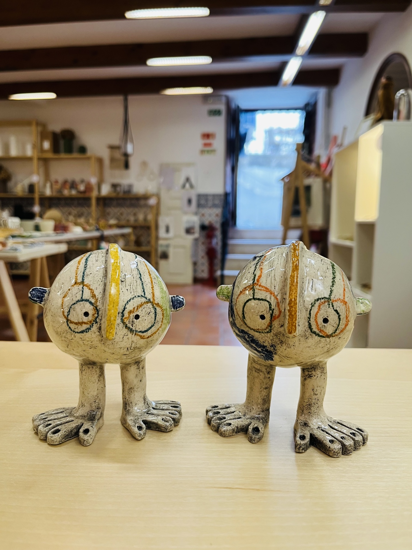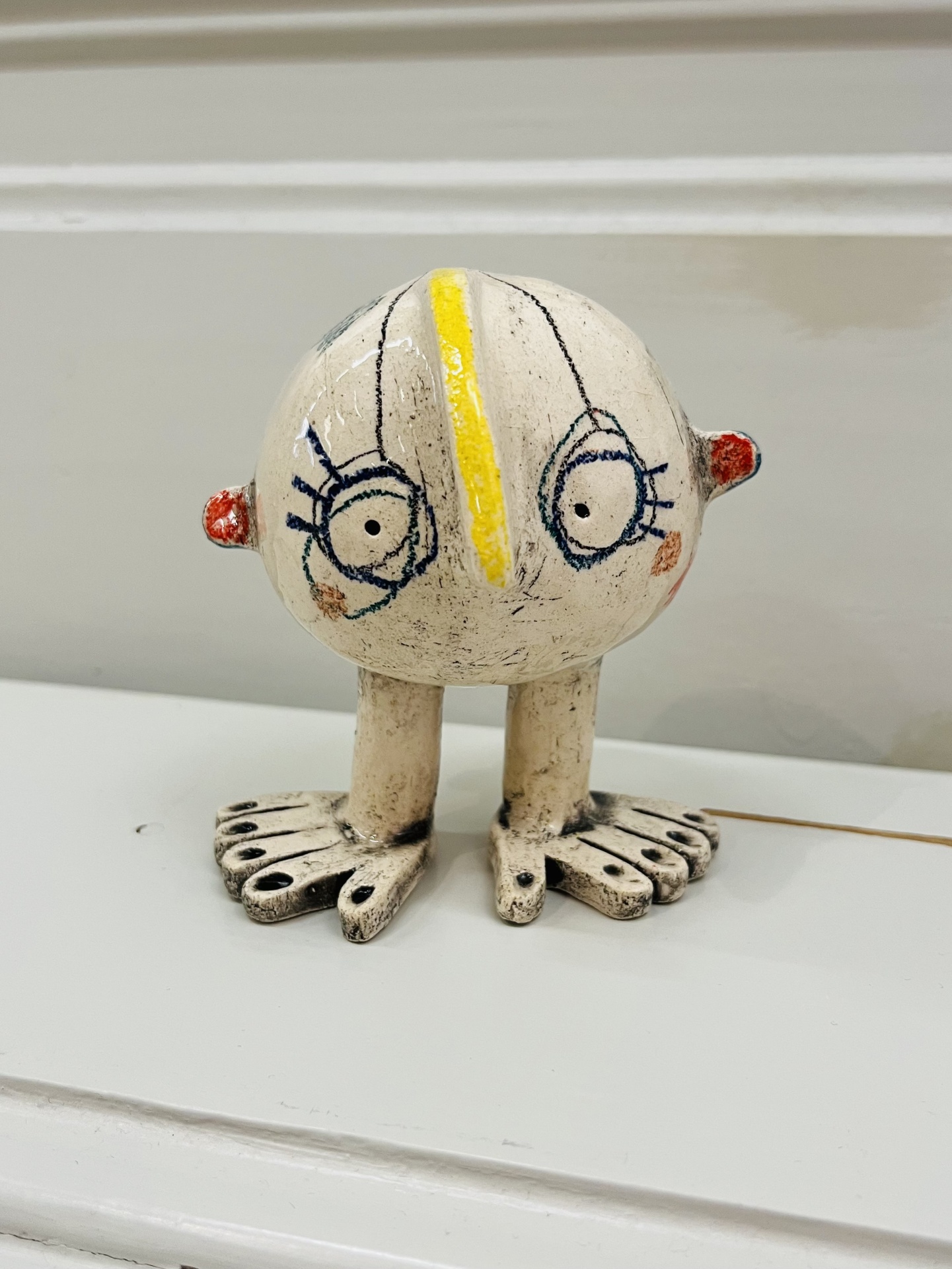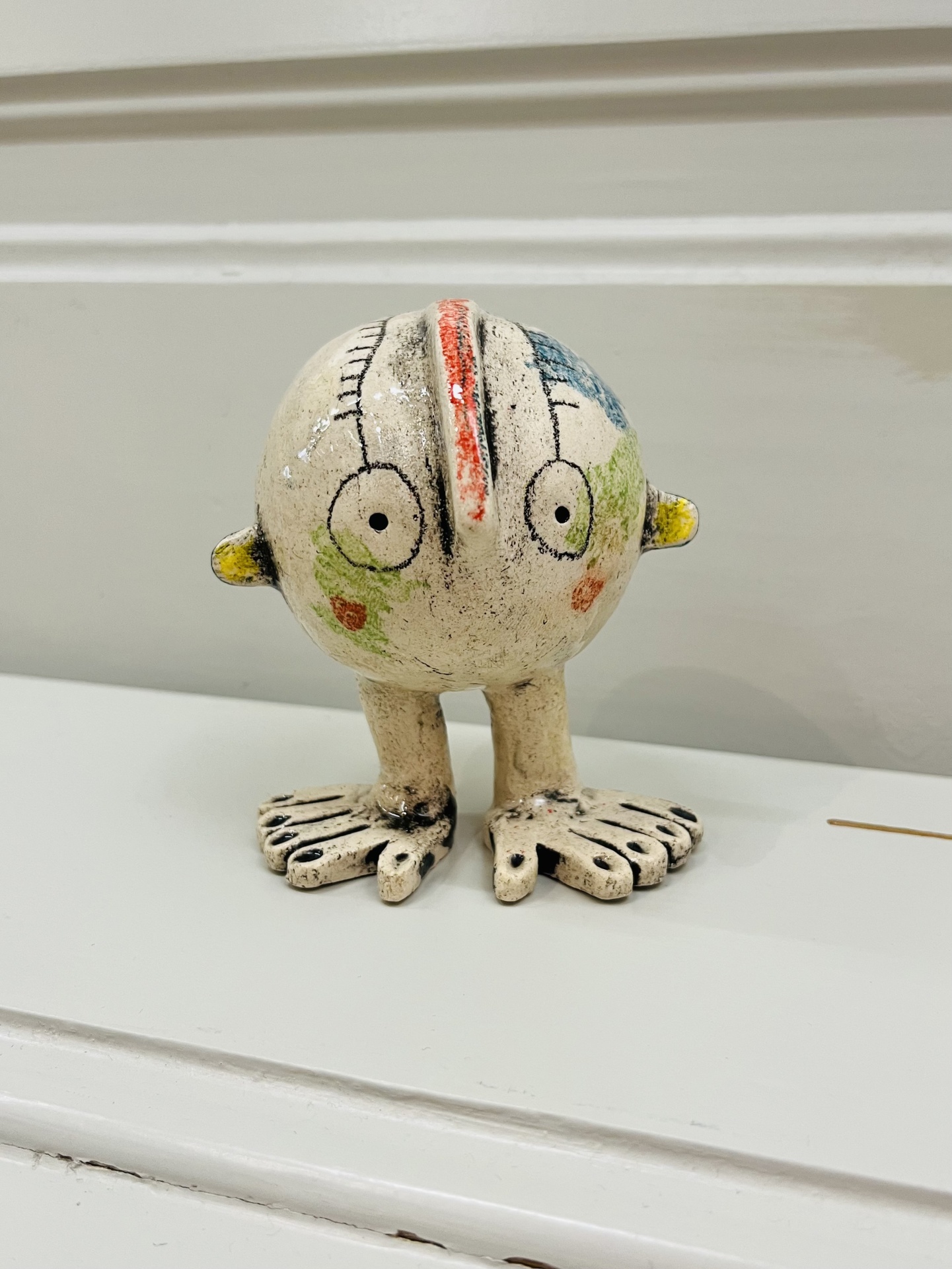As Mãos pelos Pés / Put Your Foot in Your Mouth 57,00 € Desconto de %. IVA incluído. Partilhar Mãos pelos pés 1 3 Comprar Contactar 1 unidades em stock Peça "As Mãos pelos Pés" Quem nunca passou por este tipo de situação?... Esta criatura colorida e tola lembra-nos esses momentos duma forma divertida. Cada um é uma peça única. Cerâmica colorida com subvidrado, lápis de cera e esmalte brilhante. * "Put Your Foot in Your Mouth" piece Who has never experienced this embarrassement?... This colorful silly-looking creature will remind us of those moments in a fun way. Each one is an handmade and unique piece. Stoneware, colored with underglaze, crayons and bright glaze. Tamanho/Size 10 cm altura/height approx. Artista/Artist Joana Nogueira Características
