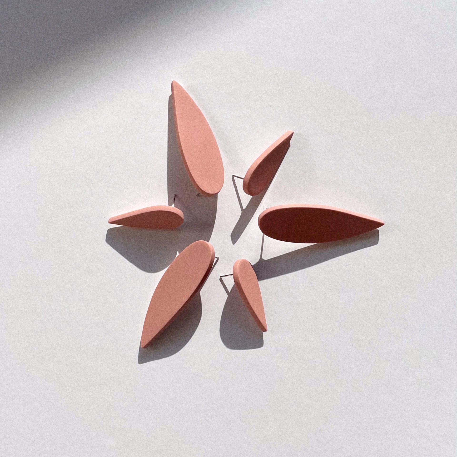 • Conjunto de brincos rosa mate ovais sobre superfície branca