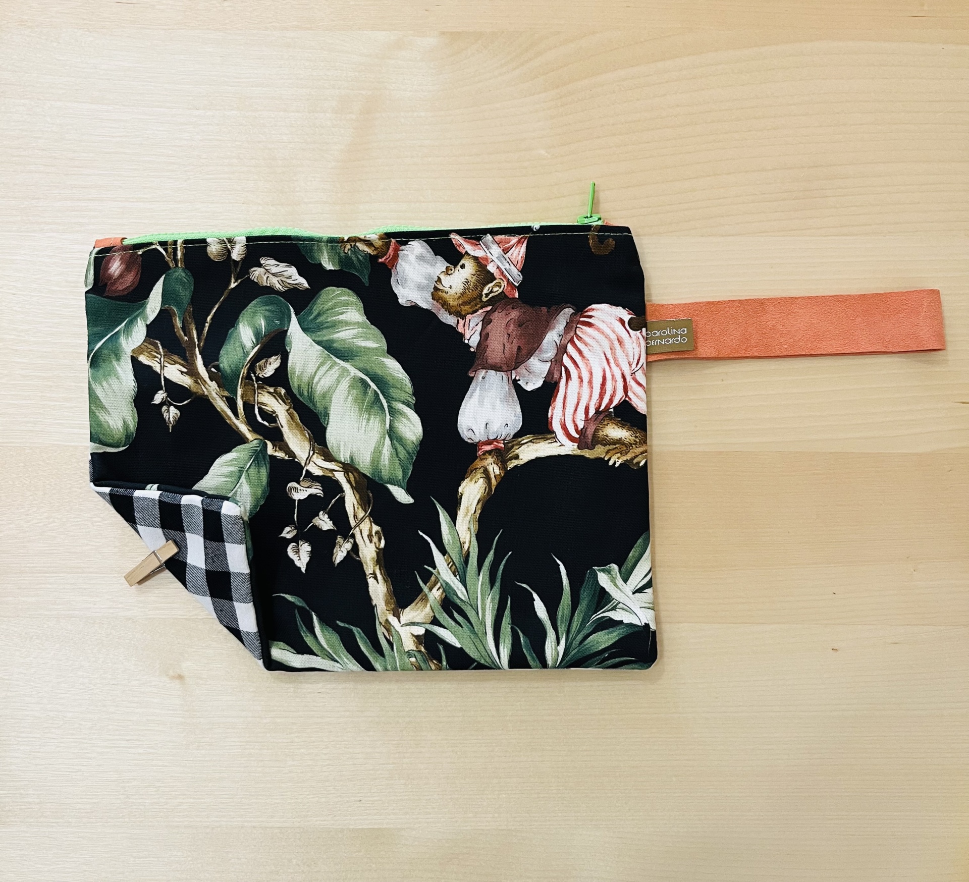 Clutch 20,00 € Desconto de %. IVA incluído. Partilhar Comprar Contactar 1 unidades em stock Clutch de tecido de algodão feita à mão, com fecho e pega em pele. Interior em vichy preto e branco. *** Cotton fabric handmade clutch, with zipper and leather handle. Black and white vichy lining. Tamanho/Size 28,5 x 22,5 cm Designer Carolina Bernardo Características