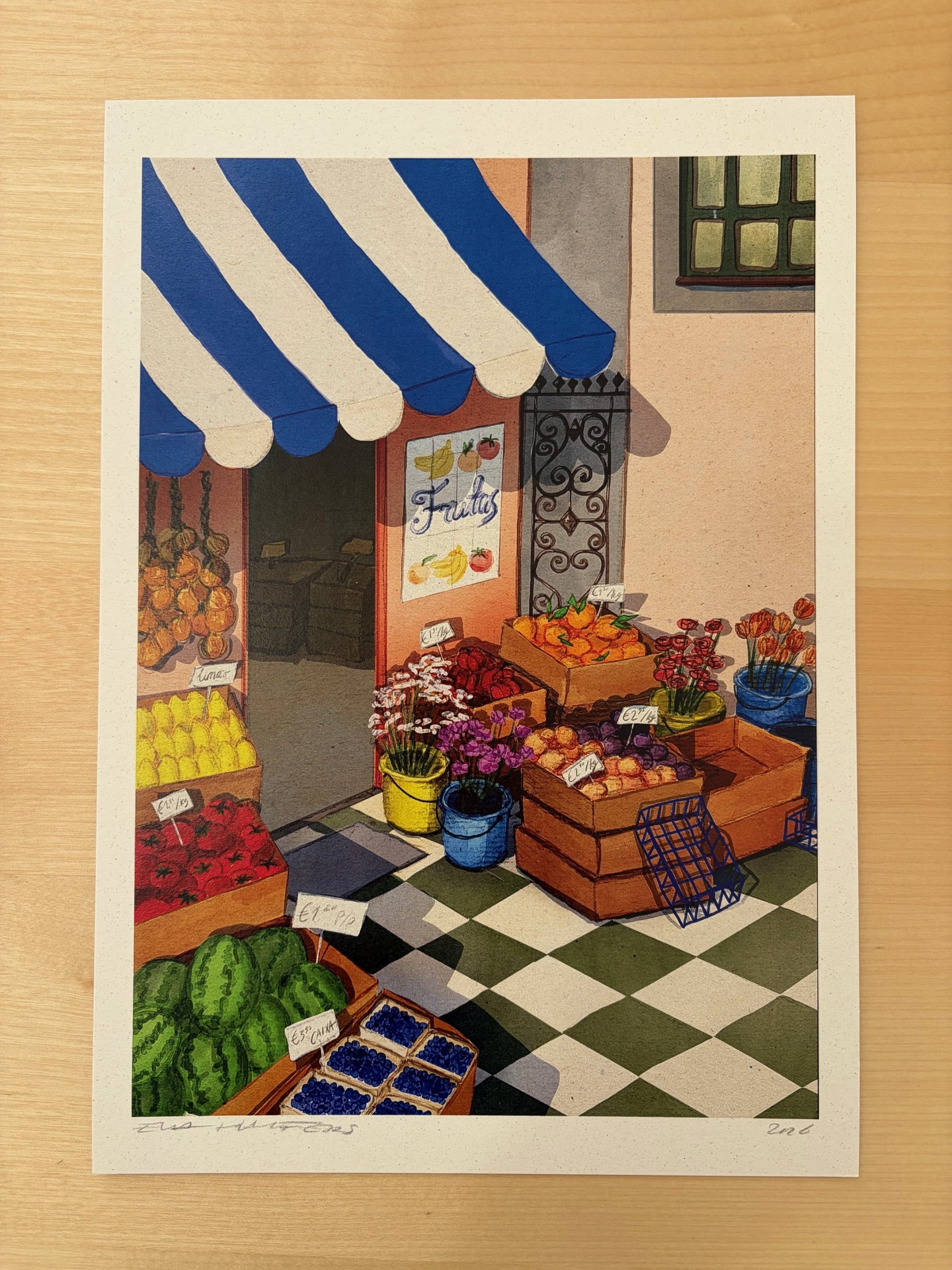 Her work is inspired by her surroundings, the beauty of small daily life moments, nature and people's habits. She mixes analogue and digital drawing techniques to tell stories through colors, shapes, and patterns.