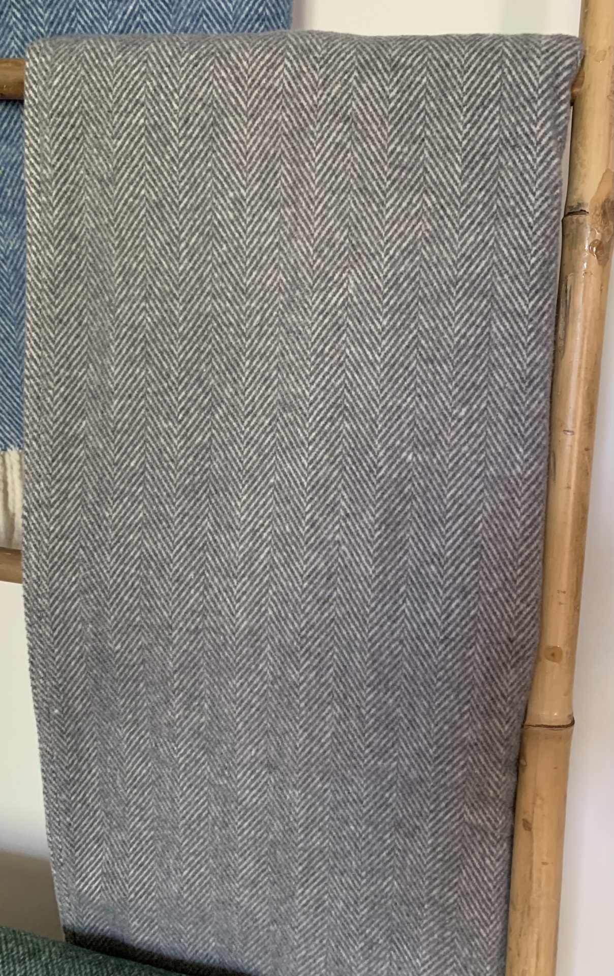 • Seis mantas de lã com padrão espinha de peixe empilhadas
