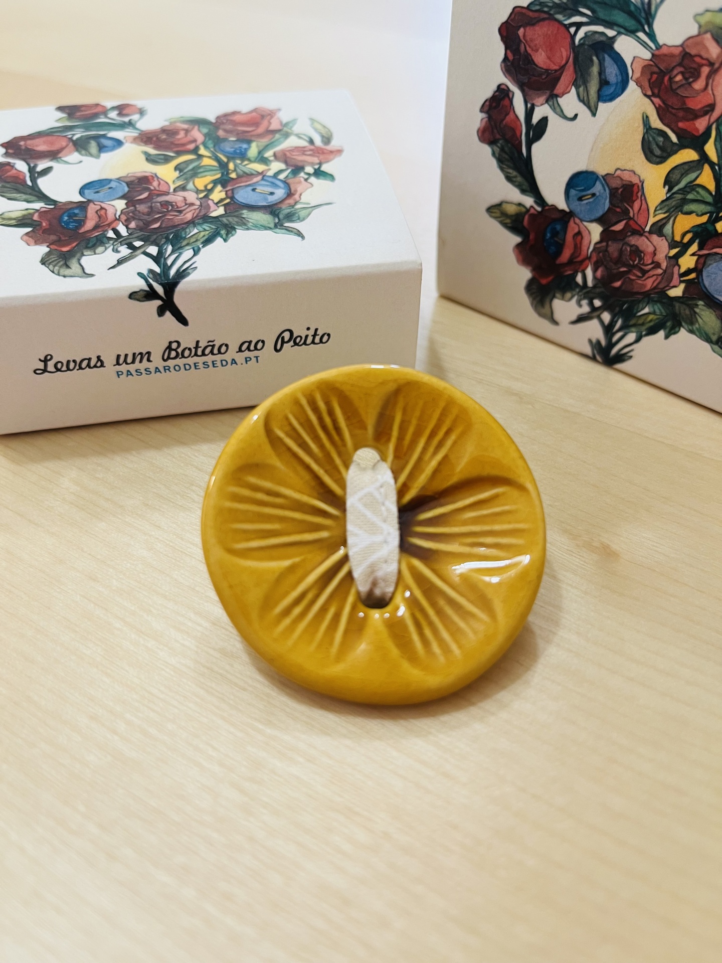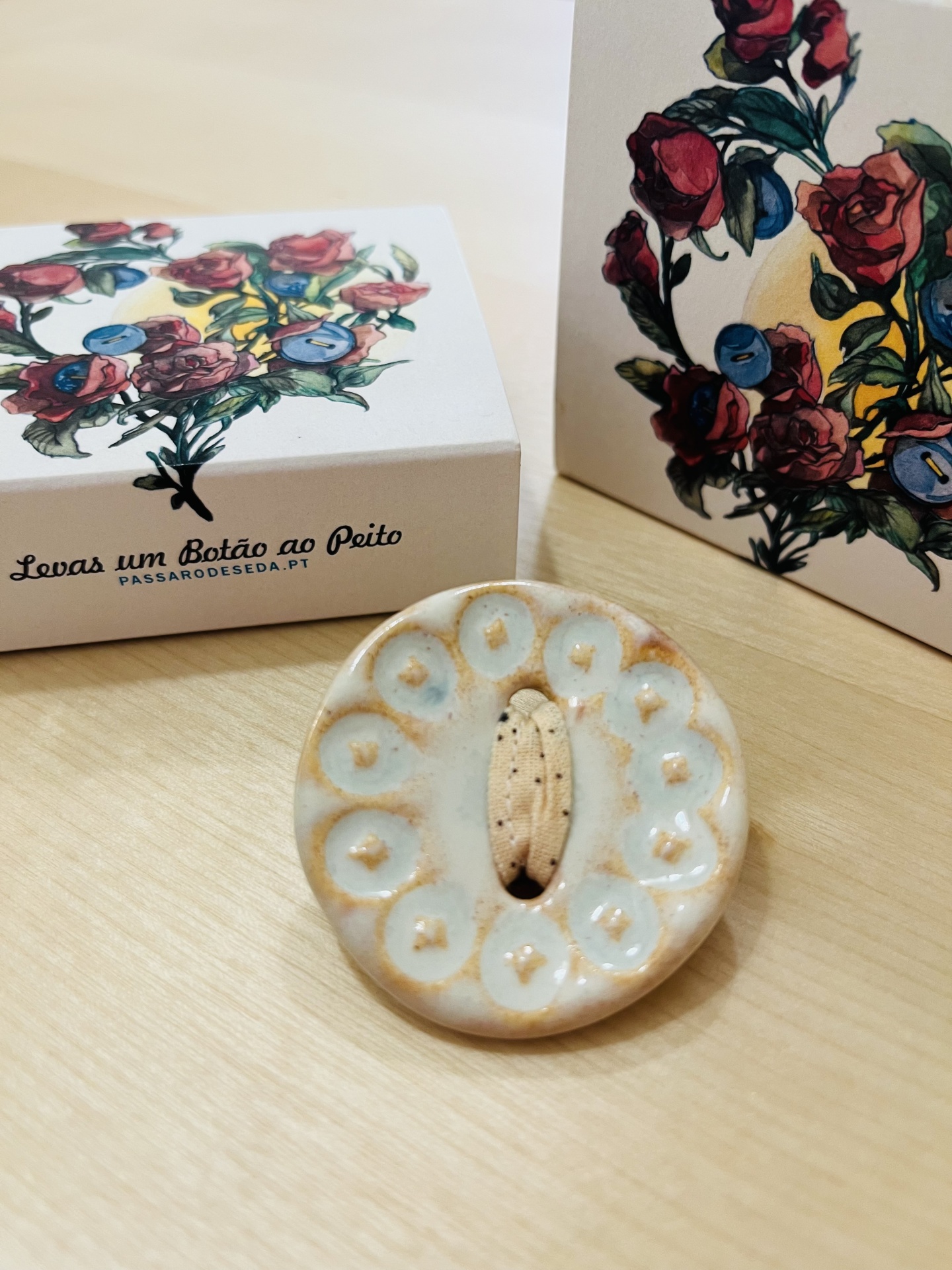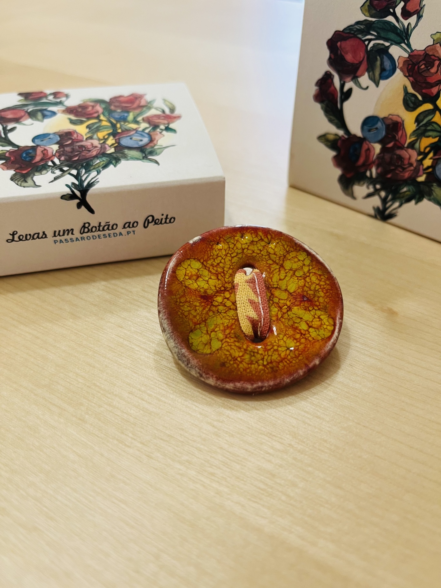 Pregadeira/Brooch “Levas um Botão ao Peito” 18,00 € Desconto de %. IVA incluído. Partilhar Pregadeira/Brooch Roxo/Purple Vermelha/red 2 Verde/Green Rosa/Pink Azul/Blue 2 Amarelo/Yellow Laranja/Orange Branco/White Verde/Green 2 Vermelha/Red Rosa/Pink 2 Comprar Contactar 1 unidades em stock Pregadeira feita à mão em cerâmica vidrada. *** Handmade glazed ceramic brooch. Artista/Artist Pássaro de Seda Diâmetro/Diameter 4,5 cm approx.