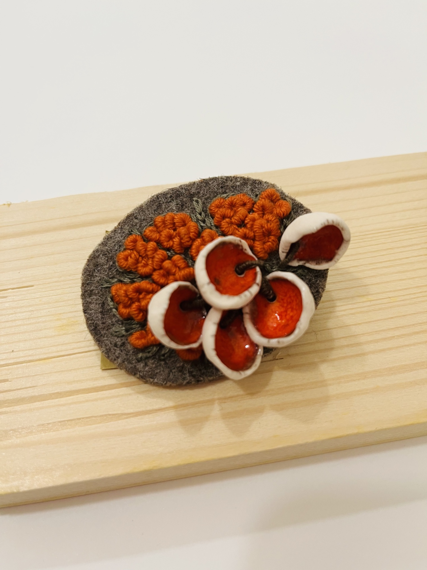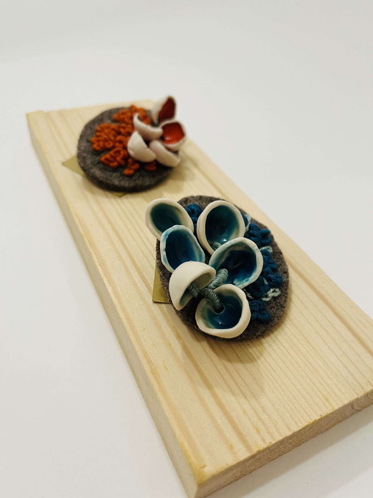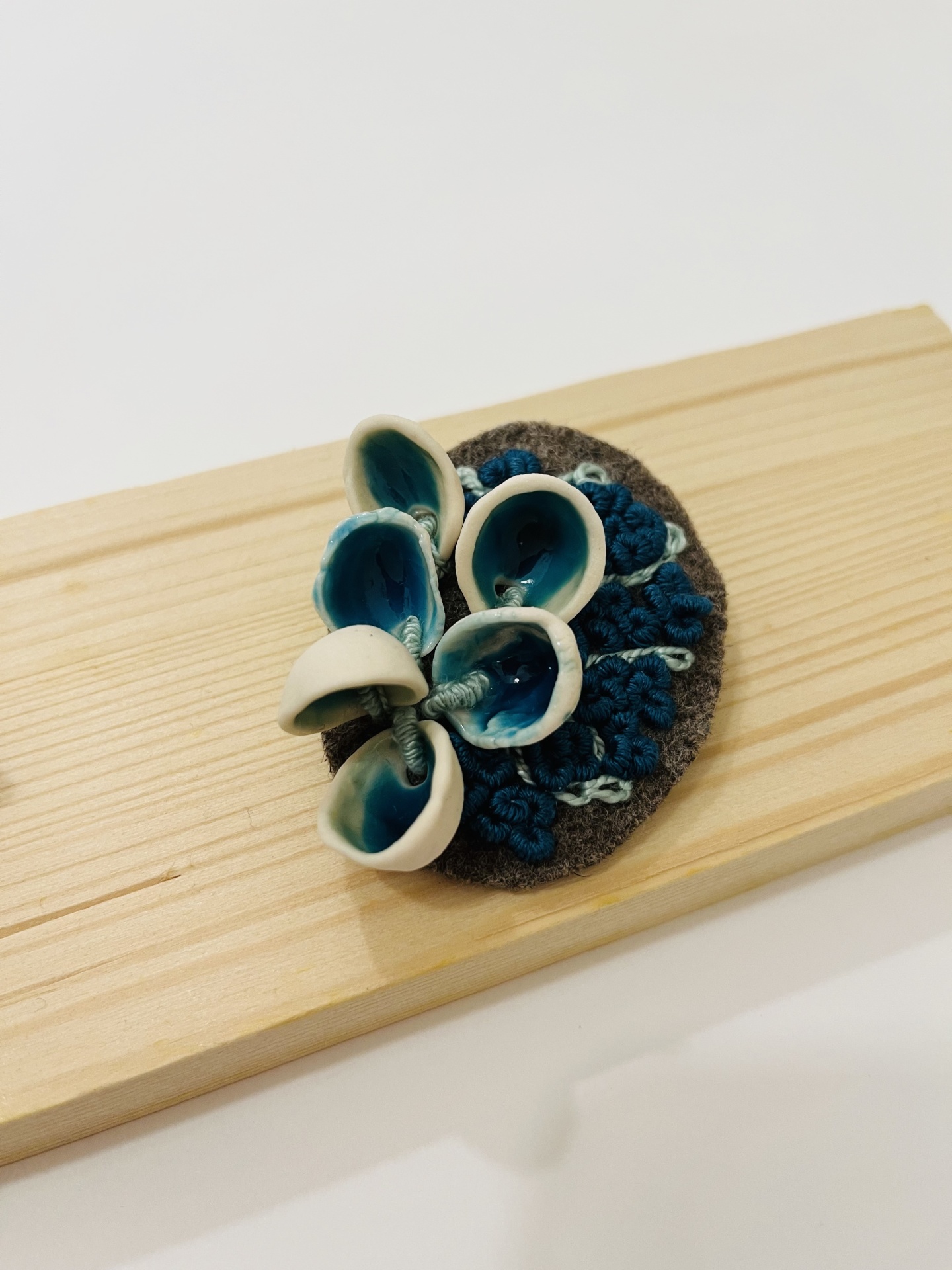 Pregadeira “Conchas”/Brooch “Shells” 30,00 € Desconto de %. IVA incluído. Partilhar Pregadeira/Brooch Azul/Blue Laranja/Orange Comprar Contactar 1 unidades em stock Pregadeira feita à mão, cerâmica e burel bordado. *** Handmade brooch, ceramics and embroidered burel. Diâmetro/Diameter Oval 6/5 cm approx Artista/Artist Ó das Bagas Características