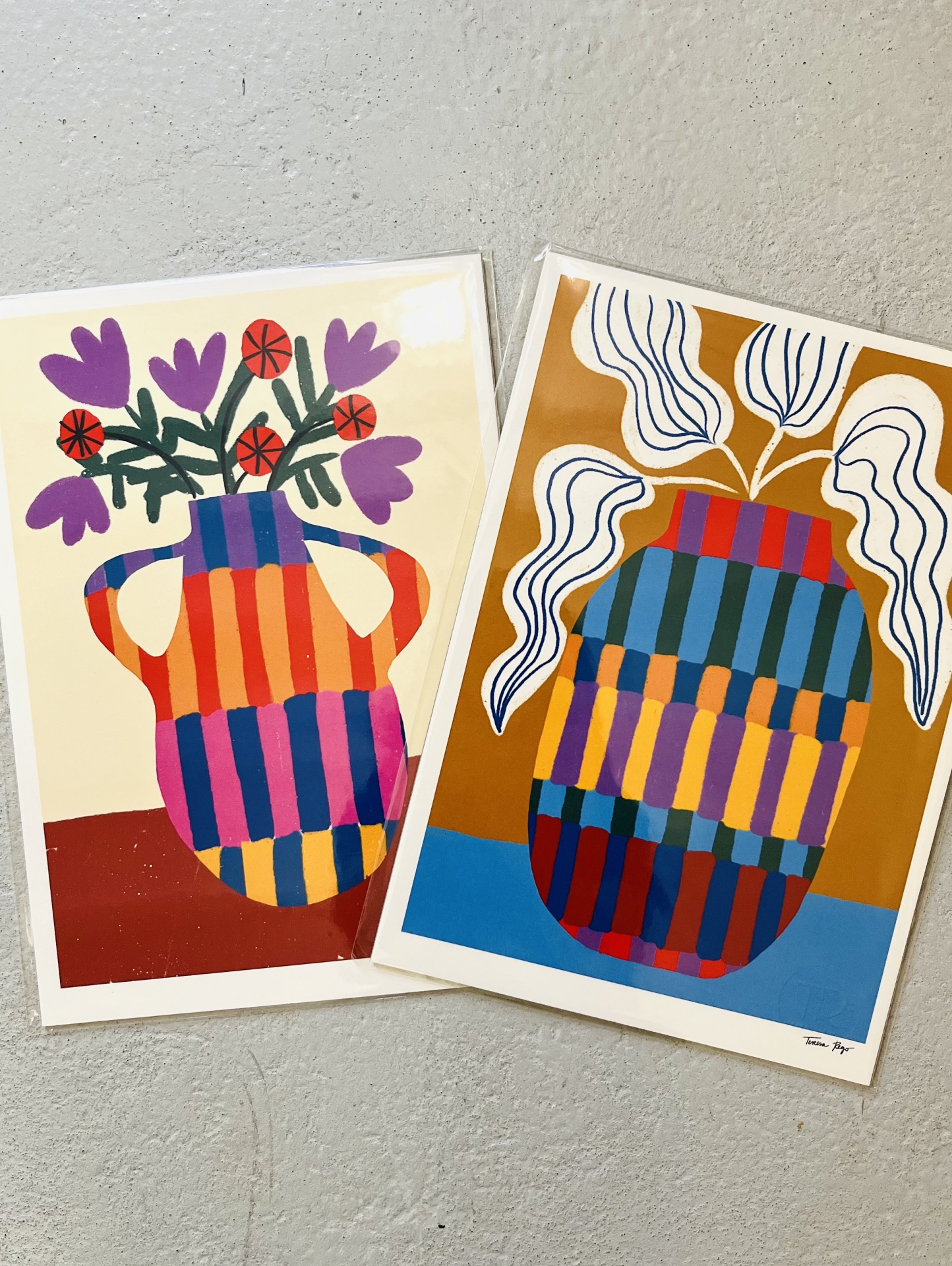 Teresa Rego 18,00 € Desconto de %. IVA incluído. Partilhar Ilustração A4/Illustration A4 Flower Sun Red Poppy Burgundy on check Winter Garden Rose Cotton Shapes White Poppies Striped Vase with Handles Striped Vase Petunia Garden Alocasia Alonsoa on Mustard Jar Double Tulips Amphorae Olive Tree Pottery Earth Red & Lemons Camelia Blue Tiles & Lemons Blooming Pomegranate Flowers Monstera Leaf Lavender Autumn II Autumn Pot II Color Block Mandarines Ocher Tree Colour Block Flower Jar Tulips & Grapes Poppy Pot Juicy Beurre Hardy Pattern Pot Herbarium Collage Mustard Poppies Pattern Begonia Azure Comprar Contactar 3 unidades em stock Teresa Rego é uma ilustradora e designer portuguesa, que cria ilustrações cheias de cor e audácia. * Teresa Rego is a portuguese illustrator and designer, that creates colourful and bold illustrations. - PORTO - Artista/Artist Teresa Rego Tamanho/Size A4 (29,7 x 21 cm)